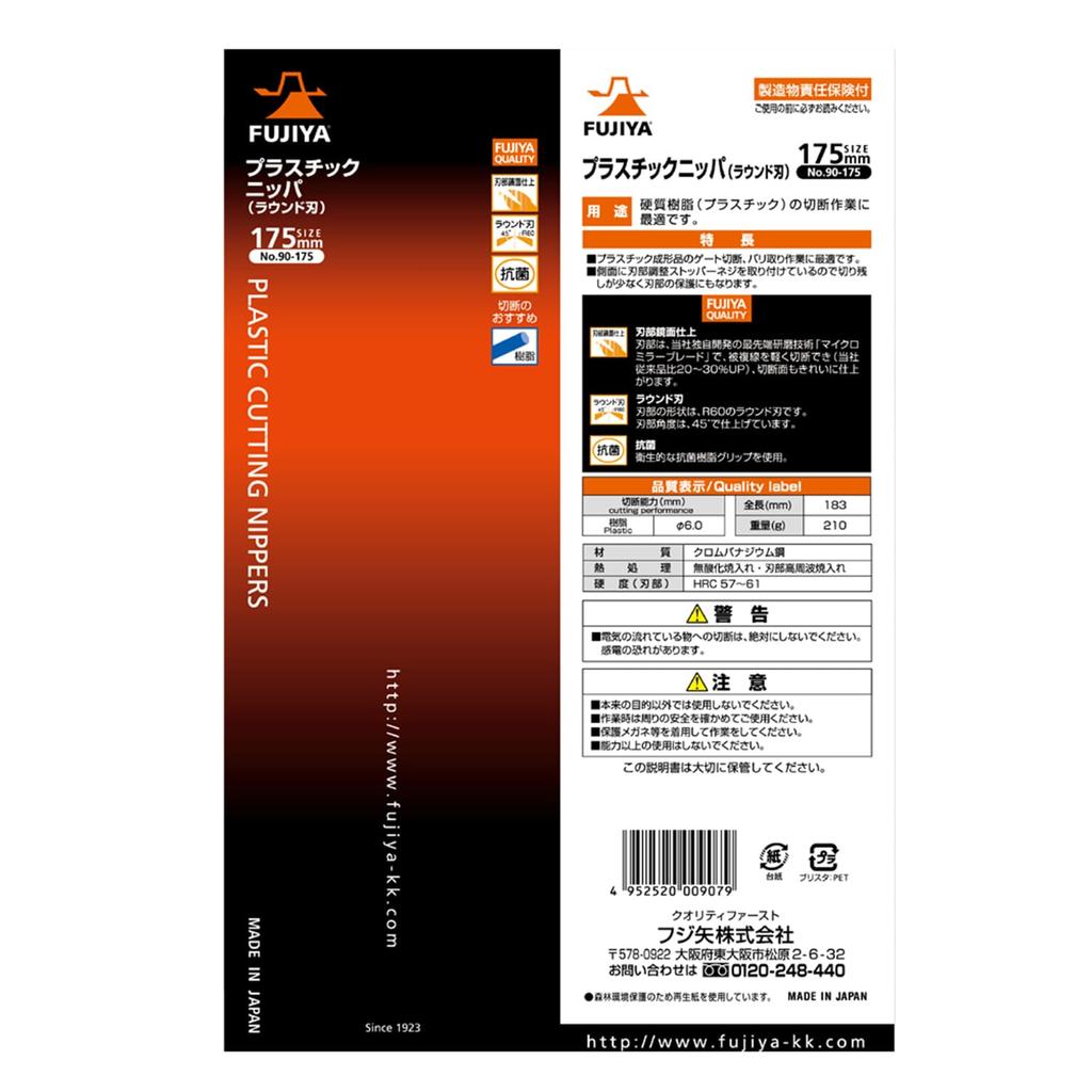 Fujiya Пластиковые кусачки (Круглое лезвие), 175 мм, Зеркальная полировка для превосходной остроты, 90-175 мм