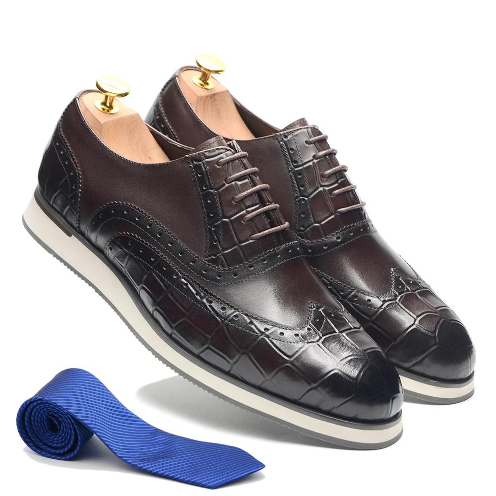 Модные мужские плоские кроссовки в британском стиле, из натуральной коровьей кожи, с мыском-броги, оксфорды, с принтом под аллигатора, повседневная обувь для платья — купить товар онлайн с бесплатной доставкой по всему миру!