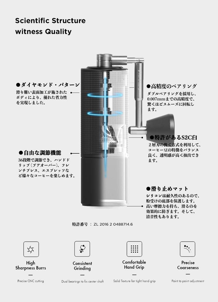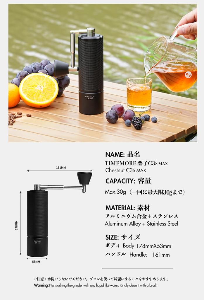 Ручная кофемолка TIMEMORE Kuriko C3sMAX с регулируемой степенью помола, экономящая силы и с годовой гарантией (C3sMAX-Черный)