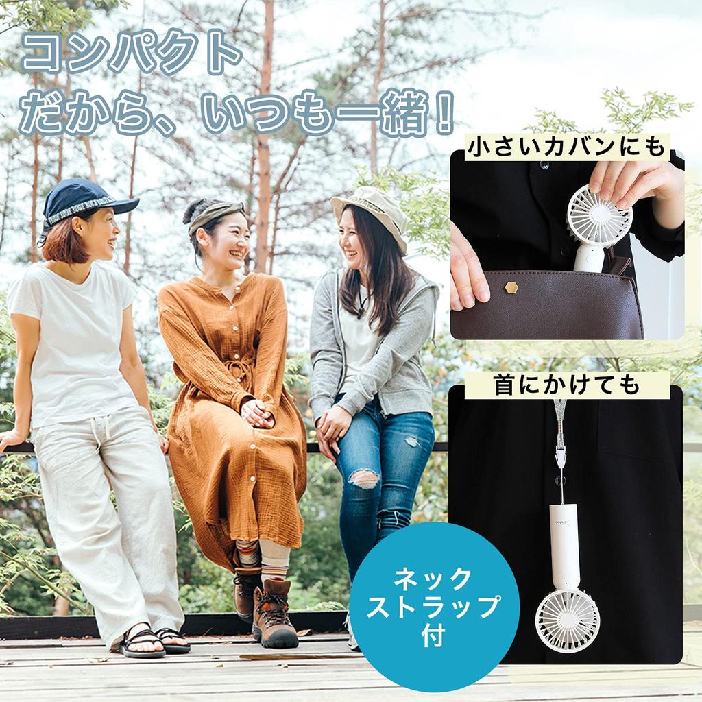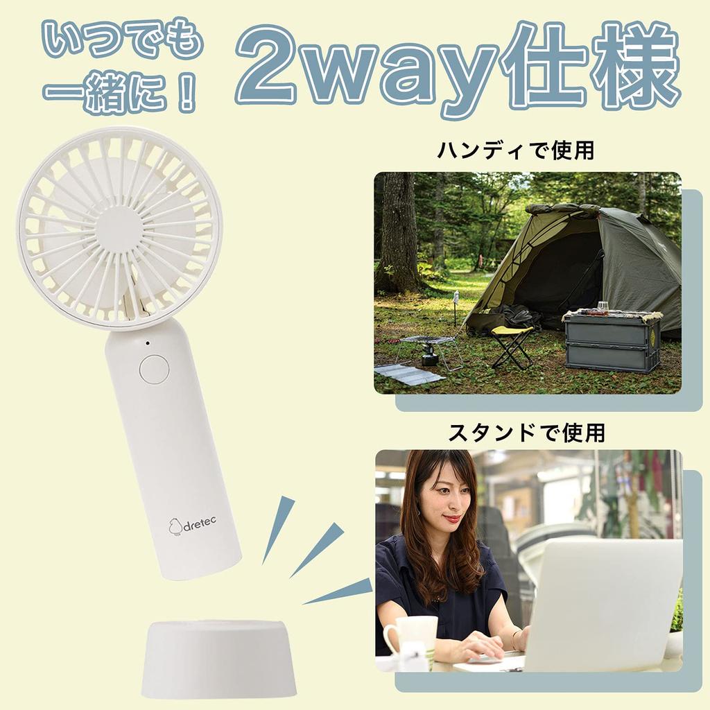 dretec Handy Fan, 2-Way, Desktop Fan, Neck Fan, USB Rechargeable, 6-Month Warranty, Pink, W70 x D45 x H170mm