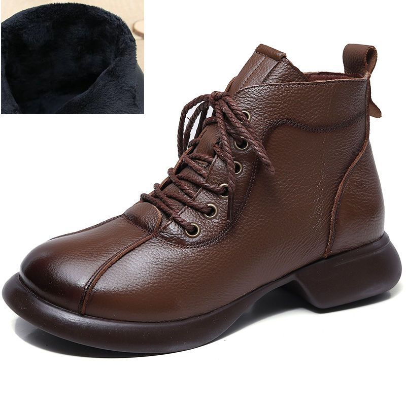 Бренд Ретро Черные Коричневые Ботинки из Спилка Женские Повседневные На Шнуровке Зимние Снежные Ботинки Нескользящие Резиновые Ботильоны Женские Ботильоны