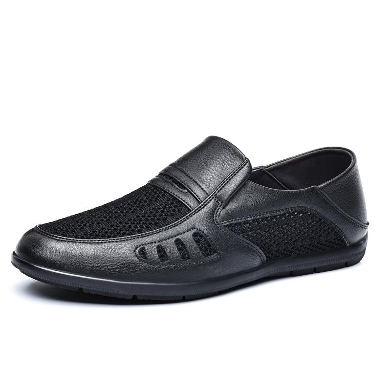 Новая мужская повседневная обувь из полой кожи, мужские трендовые дышащие туфли с отверстиями, сандалии из коровьей кожи с сумкой, обувь для папы среднего возраста