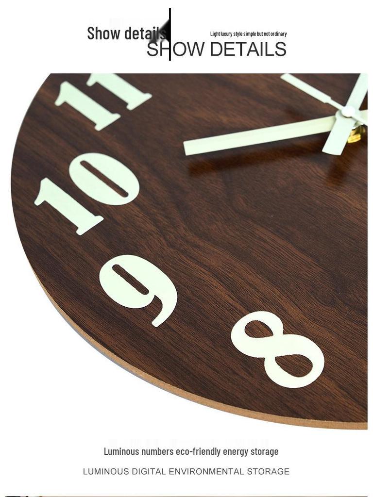12" (30см) Светящиеся деревянные часы: Минималистичные бесшумные настенные часы для декора гостиной