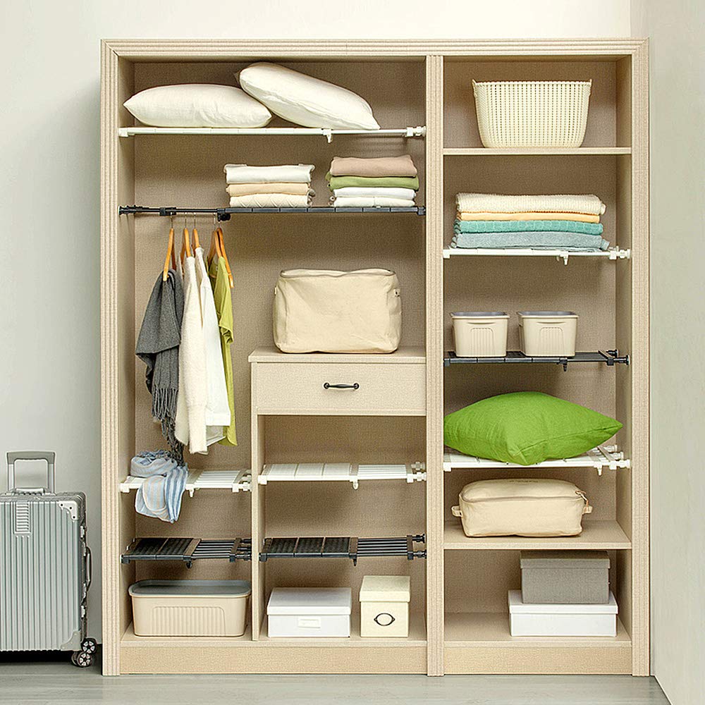 Адаптируется к неровным стенам: Имея глубину 30 см, этот широкий тип может вместить много предметов, обеспечивая больше места для хранения, чем узкие распорные полки.. Гибкие шарики позволяют устанавливать их на неровные стены. Полочные направляющие можно свободно регулировать даже после установки. Его также можно снять, если он не используется.