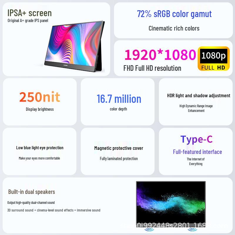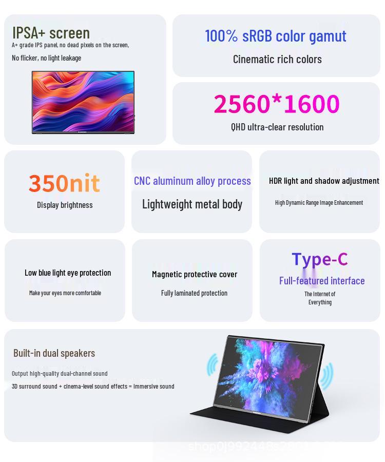 16-дюймовый портативный монитор 4K, 144 Гц, мобильный и дополнительный дисплей для ноутбука
