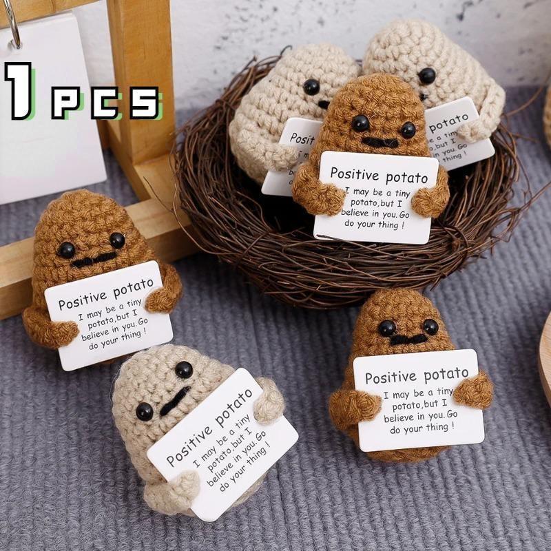 1 шт. Картошка Позитивной Энергии Мини Ручная Работа Плюшевая Вязаная Кукла с Картой Забавная Вязаная Кукла для Снятия Стресса Домашнее Украшение