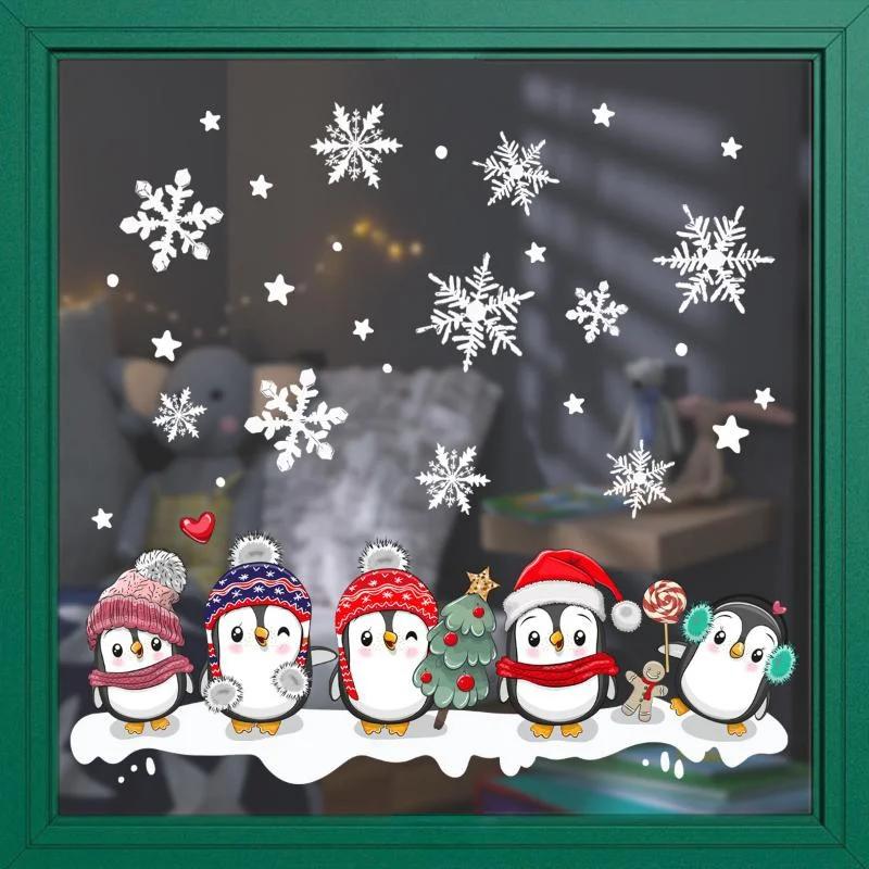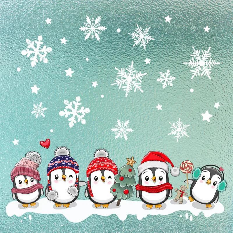 Рождественская снежинка пингвин настенная наклейка бумажная статическая паста стеклянная паста оконная паста двухсторонняя визуальная декоративная настенная наклейка
