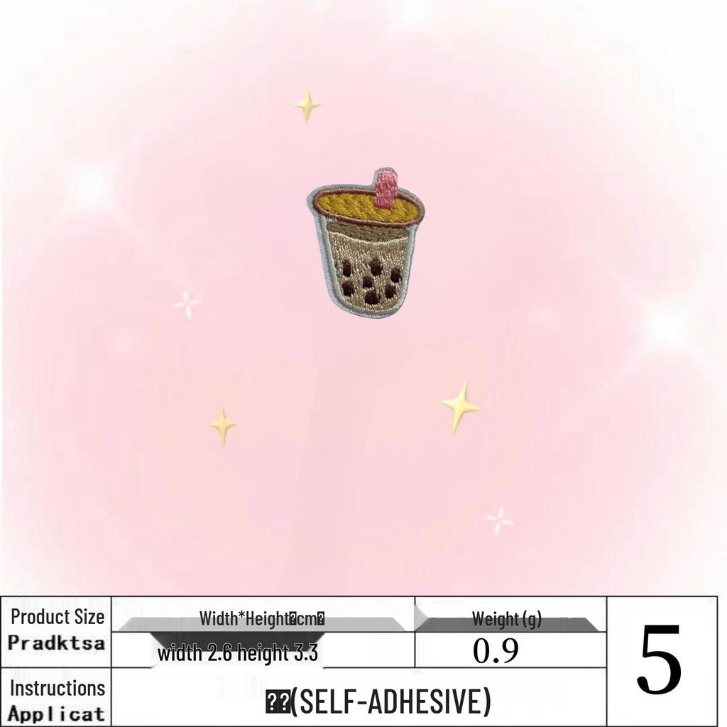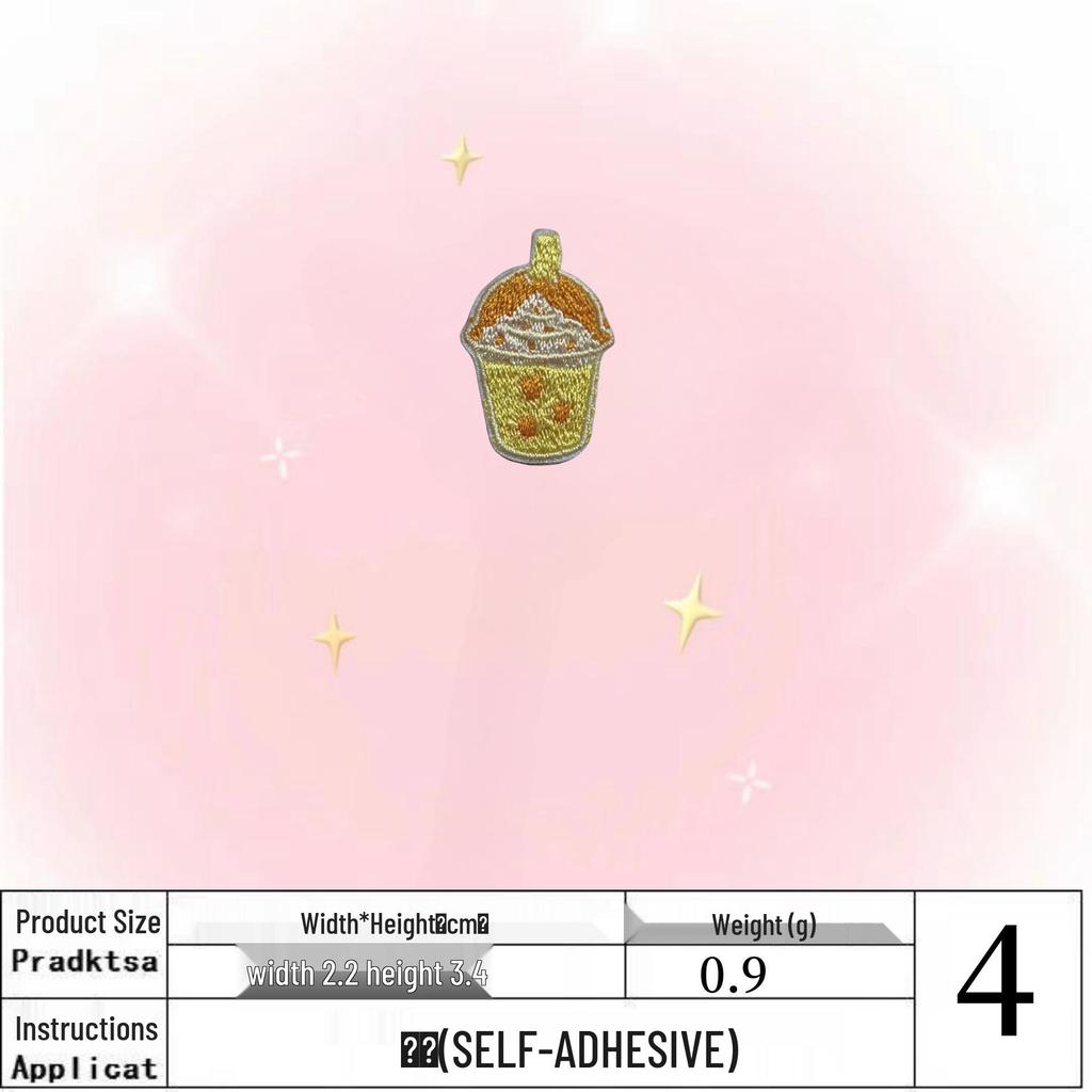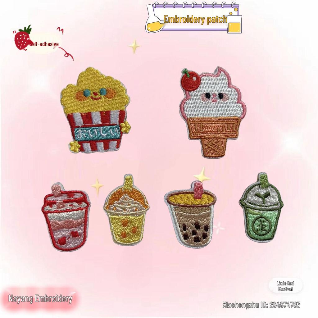 Na Yang Self-Adhesive Embroidered Patches: Milk Tea, Ice Cream, Popcorn Design Clothing Accessories