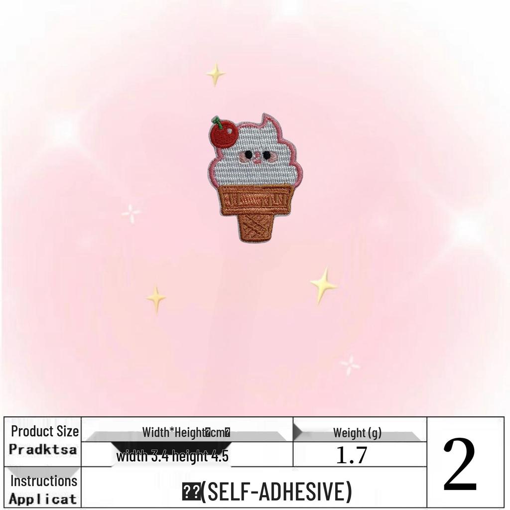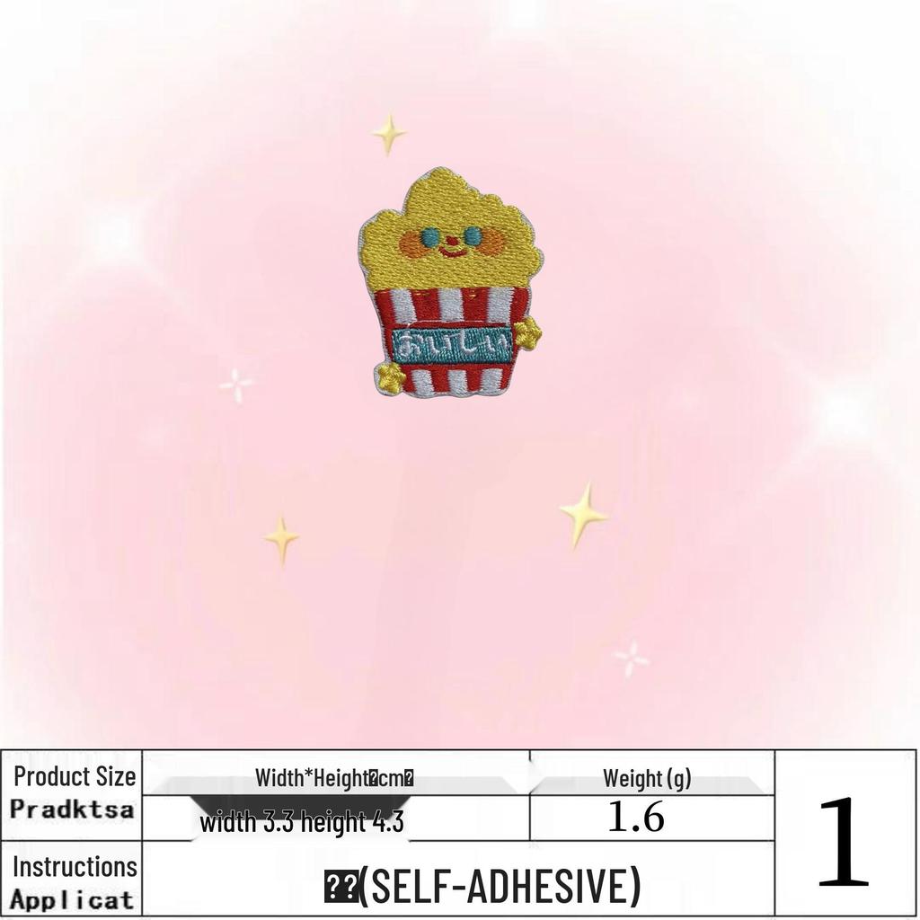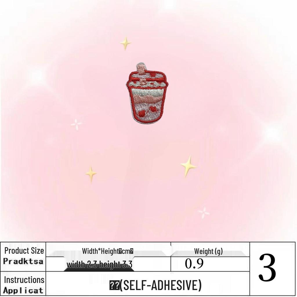 Na Yang Self-Adhesive Embroidered Patches: Milk Tea, Ice Cream, Popcorn Design Clothing Accessories