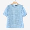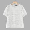 ZANZEA Женская повседневная блузка с круглым вырезом, коротким рукавом, свободного кроя, с лоскутным узором, связанным крючком