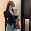 Вязаный кардиган-куртка с полувысоким воротником для женщин на раннюю осень, с застежкой-молнией, приталенный короткий топ с длинными рукавами