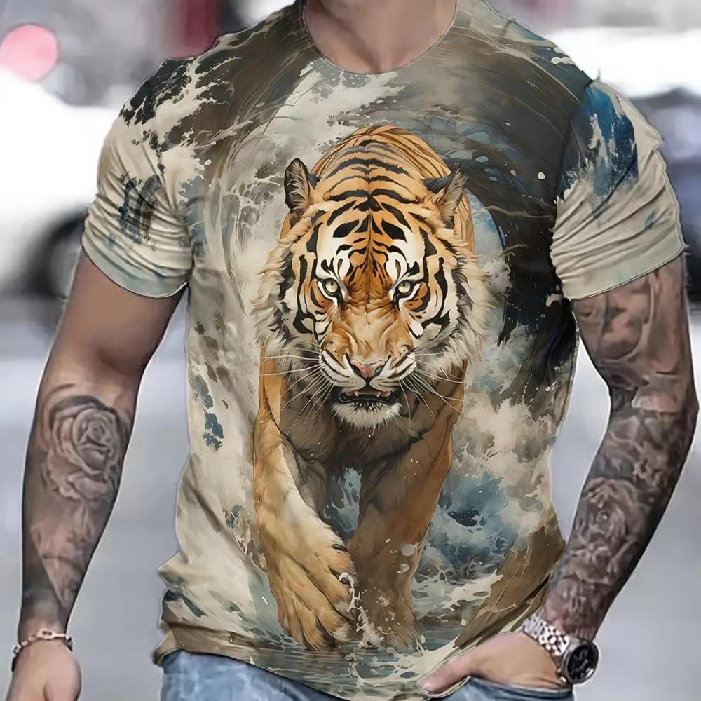 Трендовый Уличный Крутой С Коротким Рукавом 3D Цифровой Индивидуальный Модный Принт Тигра Свободный и Удобный Повседневный Мужской