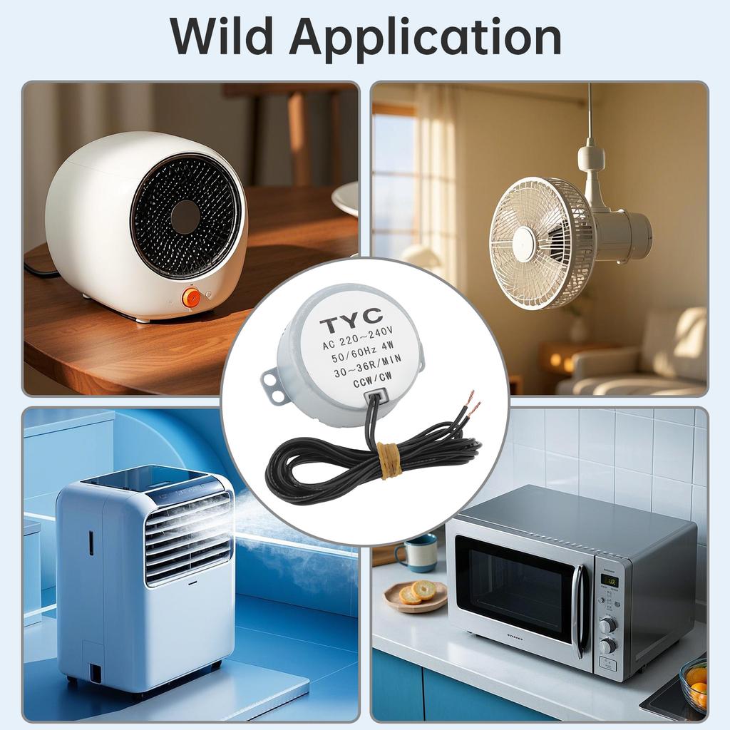 - Широко используется для механизма направления воздуха и механизма качания электрических вентиляторов, обогревателей, тепловентиляторов, малых углов качания, различных выставочных стендов, поделок, осветительных приборов, игрушек и другой утвари, а также в качестве двигателя направления воздуха различных кондиционеров и двигателя поворотного стола микроволновых печей. - Это ненаправленный синхронный двигатель, который автоматически меняет направление вращения при встрече с высоким сопротивлением или когда нагрузка достигает номинального крутящего момента двигателя.