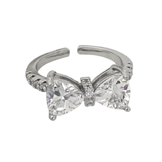 Кольцо-бантик с кубическим цирконием, регулируемое, со стразами, с бантом, открытое, обручальное, ювелирное изделие для женщин