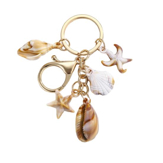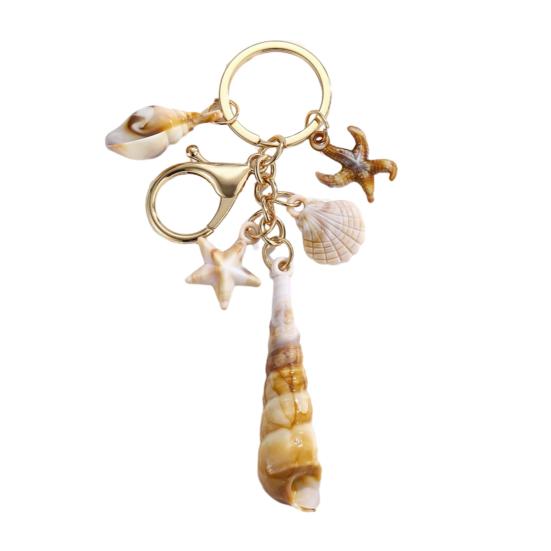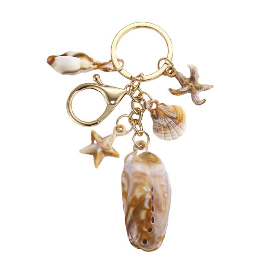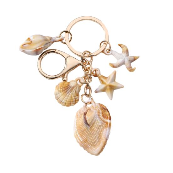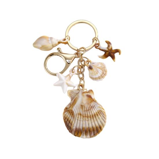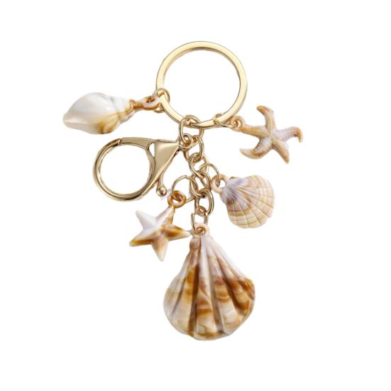 Очарование побережья: Почувствуйте очарование океана с этим уникально разработанным пляжным брелоком, искусно сочетающим элементы морской звезды, ракушек и раковины.. Незаменимый аксессуар для любителей пляжа, этот милый брелок в виде ракушки излучает прибрежную элегантность.