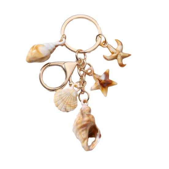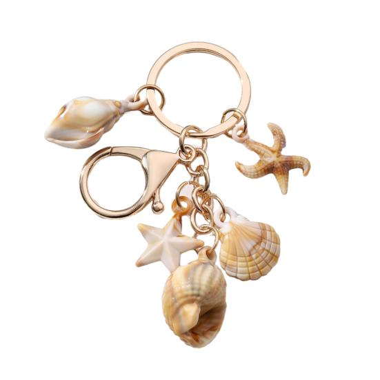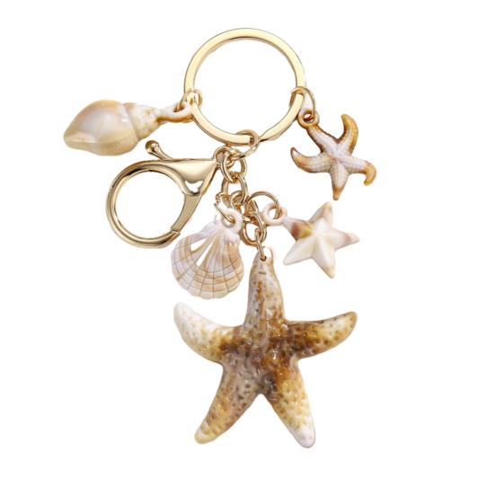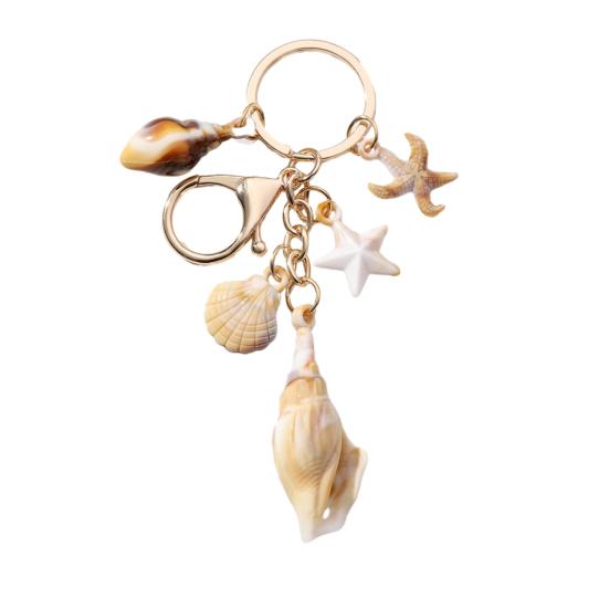 Этот милый брелок в виде ракушки, изготовленный из высококачественной нержавеющей стали и акрила, имеет уникальный дизайн в пляжном стиле, включая элементы морской звезды, ракушек и раковины, и идеально подходит для любителей пляжа..