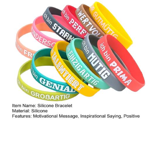 Многоцелевая утилита: Эти силиконовые браслеты можно использовать в качестве аксессуаров для вечеринок, наполнителей для праздничных сумок или мотивирующих подарков, что делает их идеальными для детей, подростков, студентов и коллег.