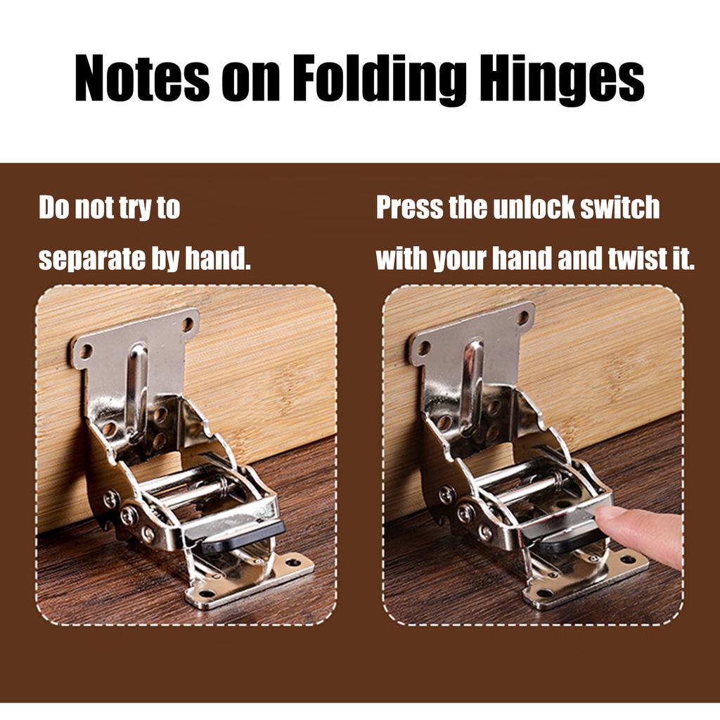 Для использования в домах, офисах, студиях и в промышленной среде эти петли могут применяться к складным столам, дверцам шкафов и другой мебели, требующей дополнительного места для хранения. Меры предосторожности при использовании складных петель:Не ломайте его голыми руками, Нажмите на переключатели разблокировки и поверните его