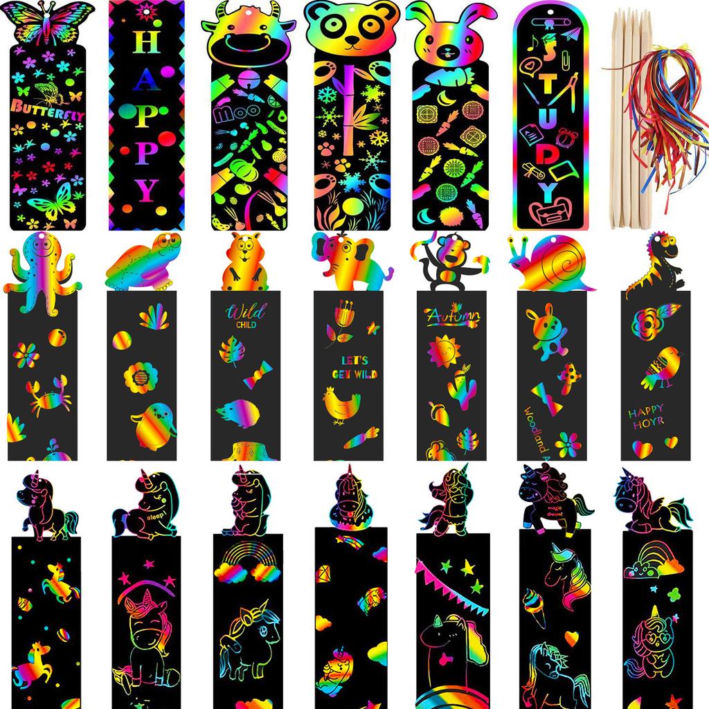 24 шт. Игрушки-животные сделай сам, бумага для рисования царапанием, инопланетная бумага для рисования царапанием, цветная бумага для царапания для детей