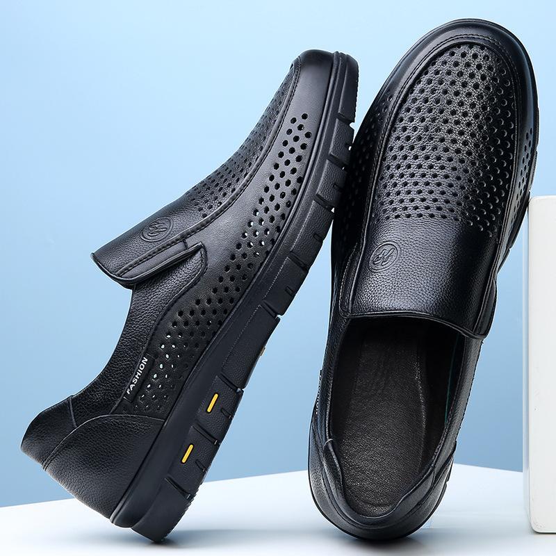 Кожаная обувь мужская полая дышащая для мужчин среднего возраста кожаные сандалии из натуральной кожи мужская обувь деловая повседневная кожаная обувь