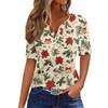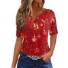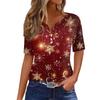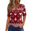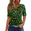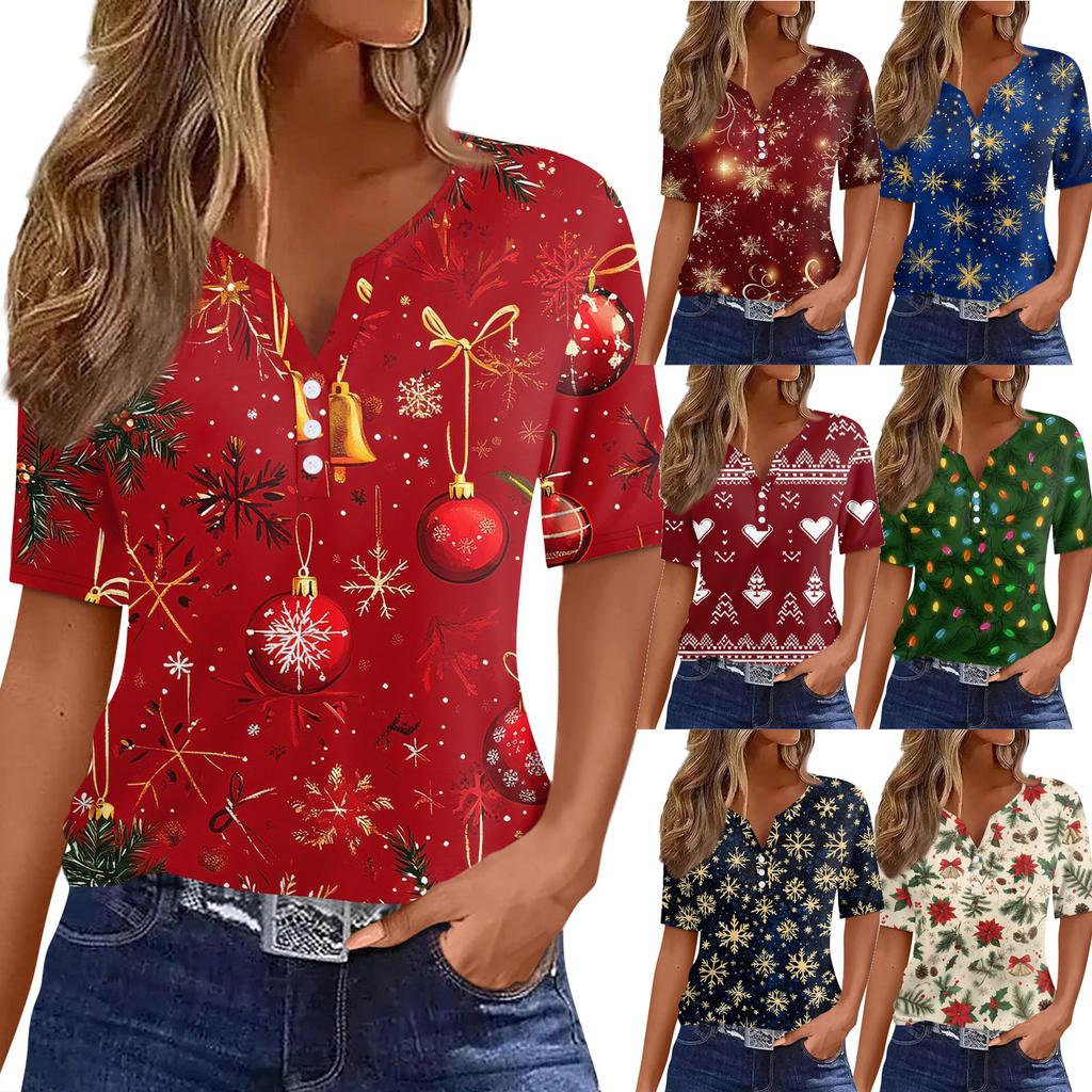 Женская футболка с рождественским принтом, на пуговицах, с коротким рукавом, повседневная, для выходных, модная, базовая, с V-образным вырезом, обычная