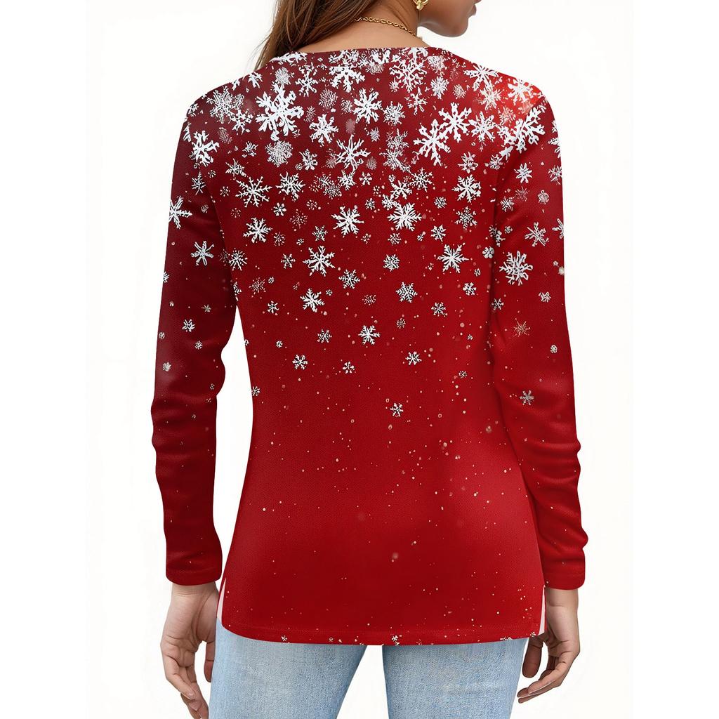 Женская модная повседневная футболка с разрезом по низу, круглым вырезом, длинными рукавами, свободного кроя, с рождественским принтом, женский топ