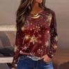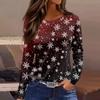 Женская модная повседневная футболка с разрезом по низу, круглым вырезом, длинными рукавами, свободного кроя, с рождественским принтом, женский топ