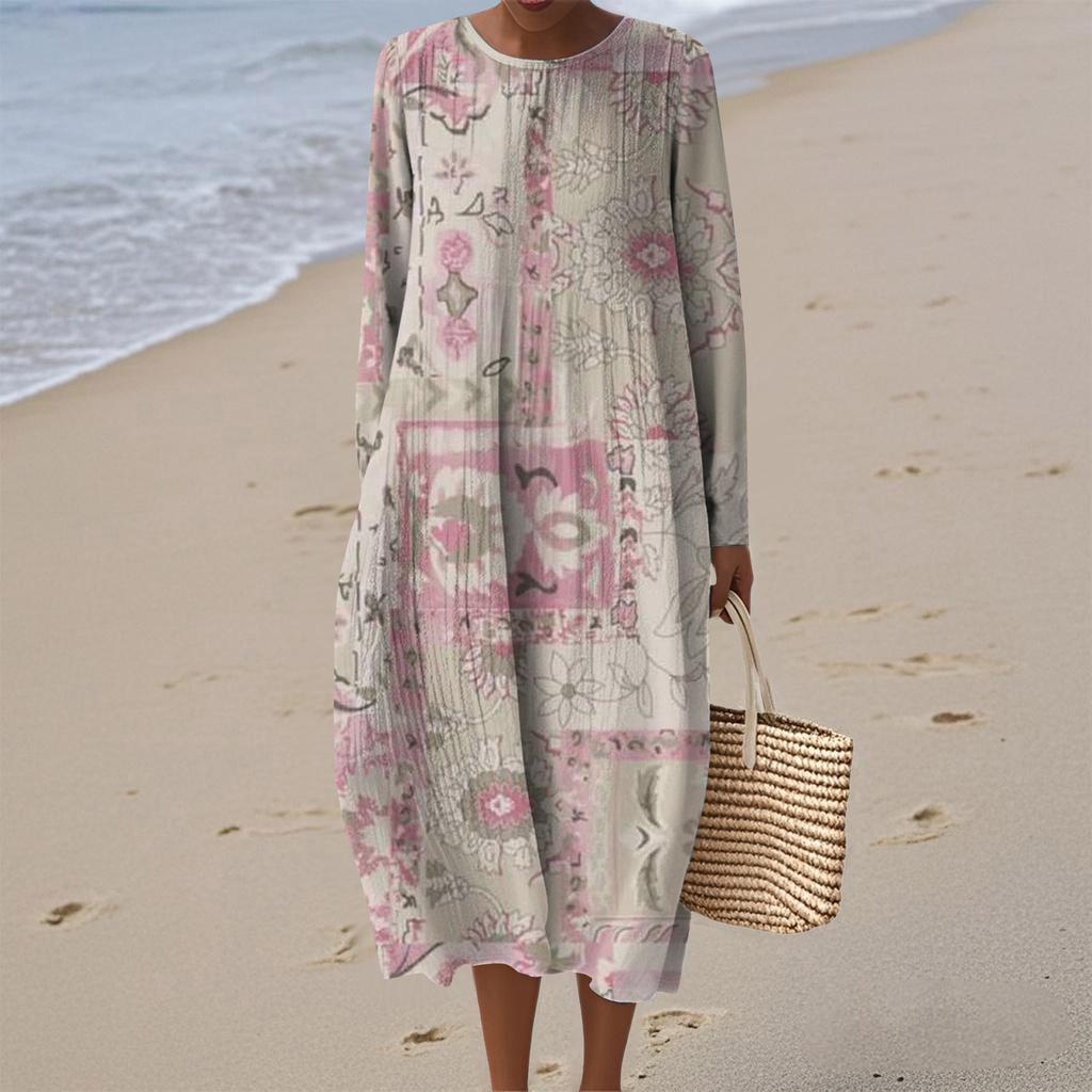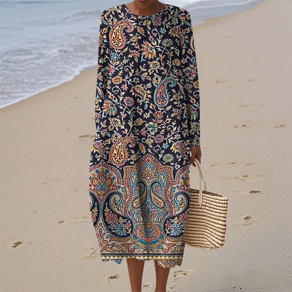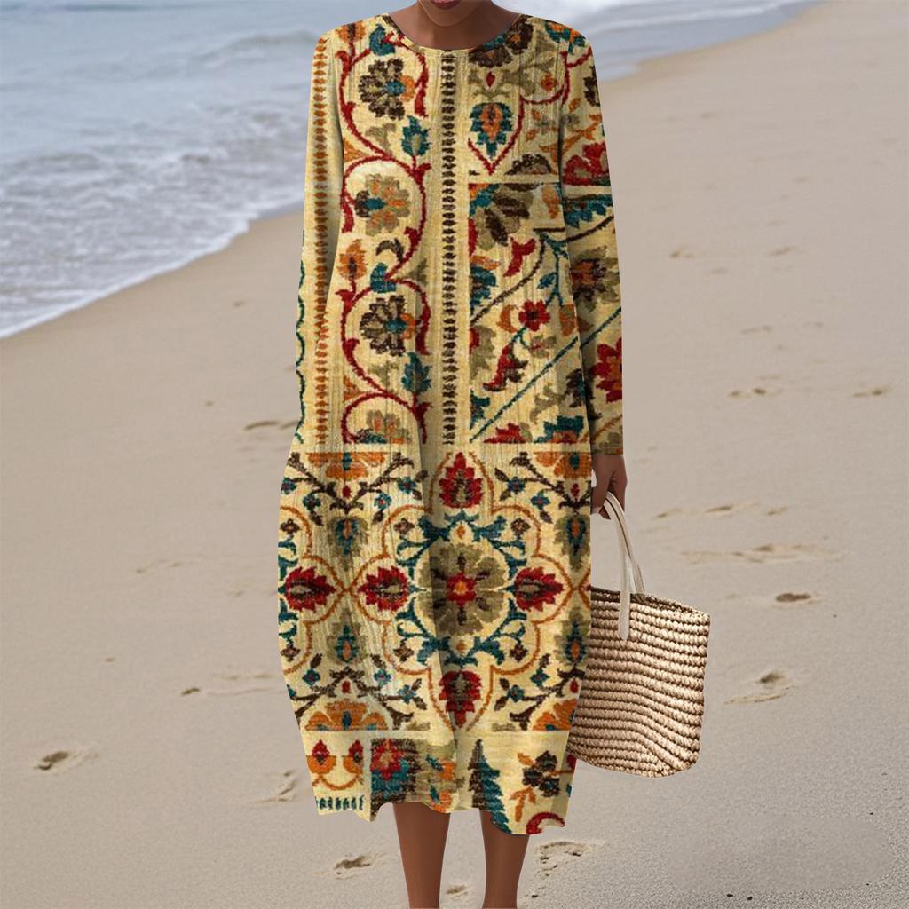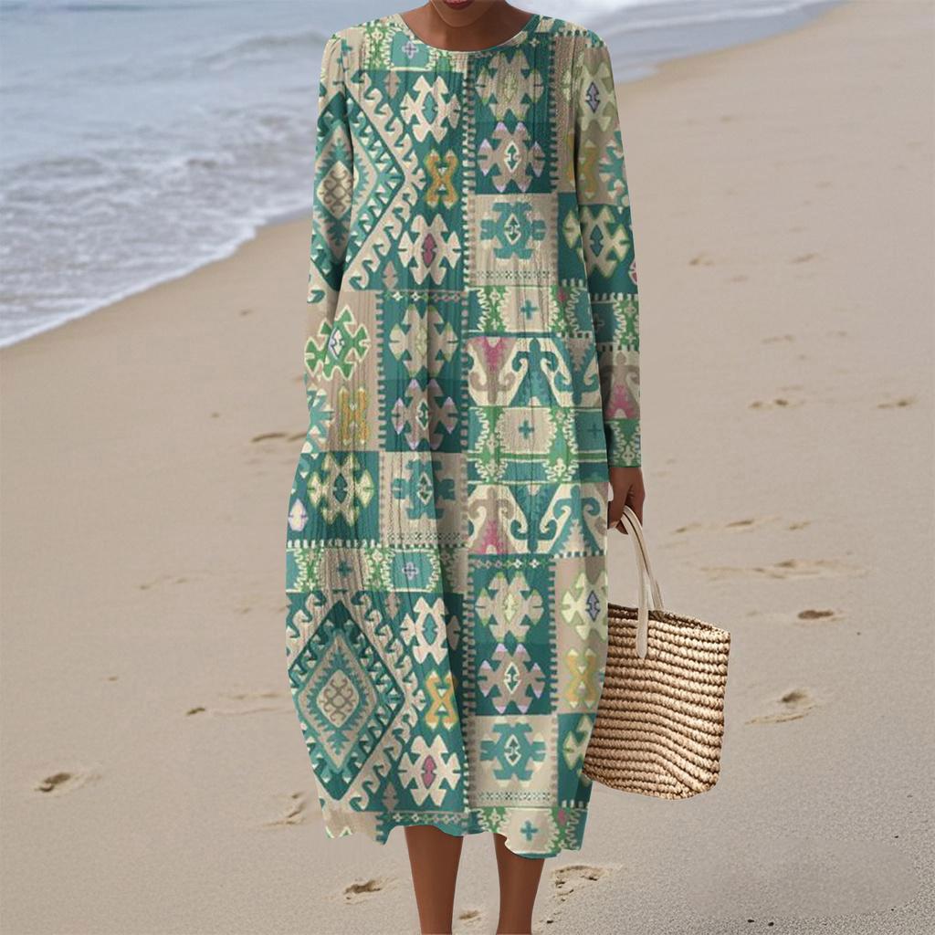 Женское модное повседневное платье с длинными рукавами, круглым вырезом, ретро геометрическим принтом, элегантное
