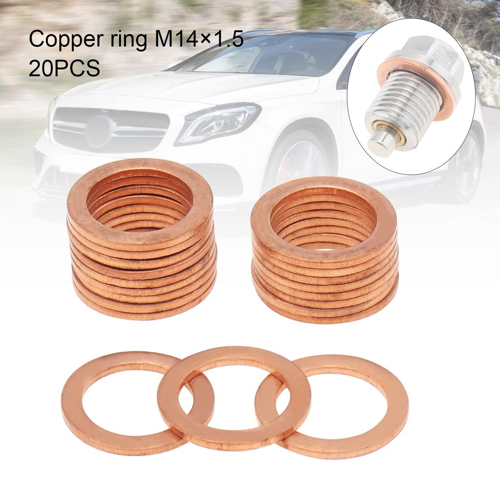 20 шт. M14x1.5 Медные уплотнительные шайбы для сливной пробки масла, уплотнительное кольцо для охлаждающей жидкости, набор прокладок