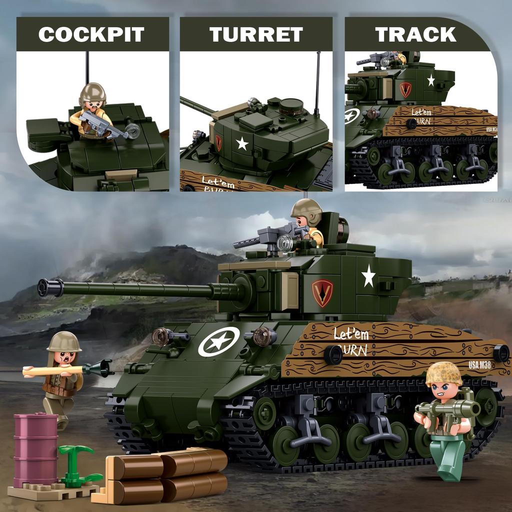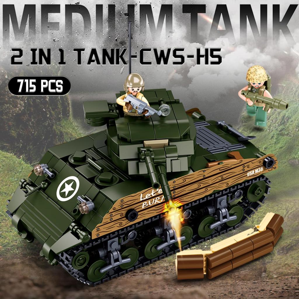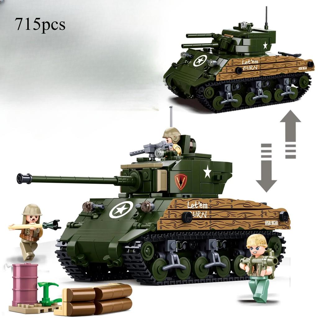 715 шт. M4A3 Модель среднего танка Строительные блоки Вторая мировая война Классический армейский бронированный танк Фигурка солдата Кирпичики DIY Игрушки для детей Праздничный подарок