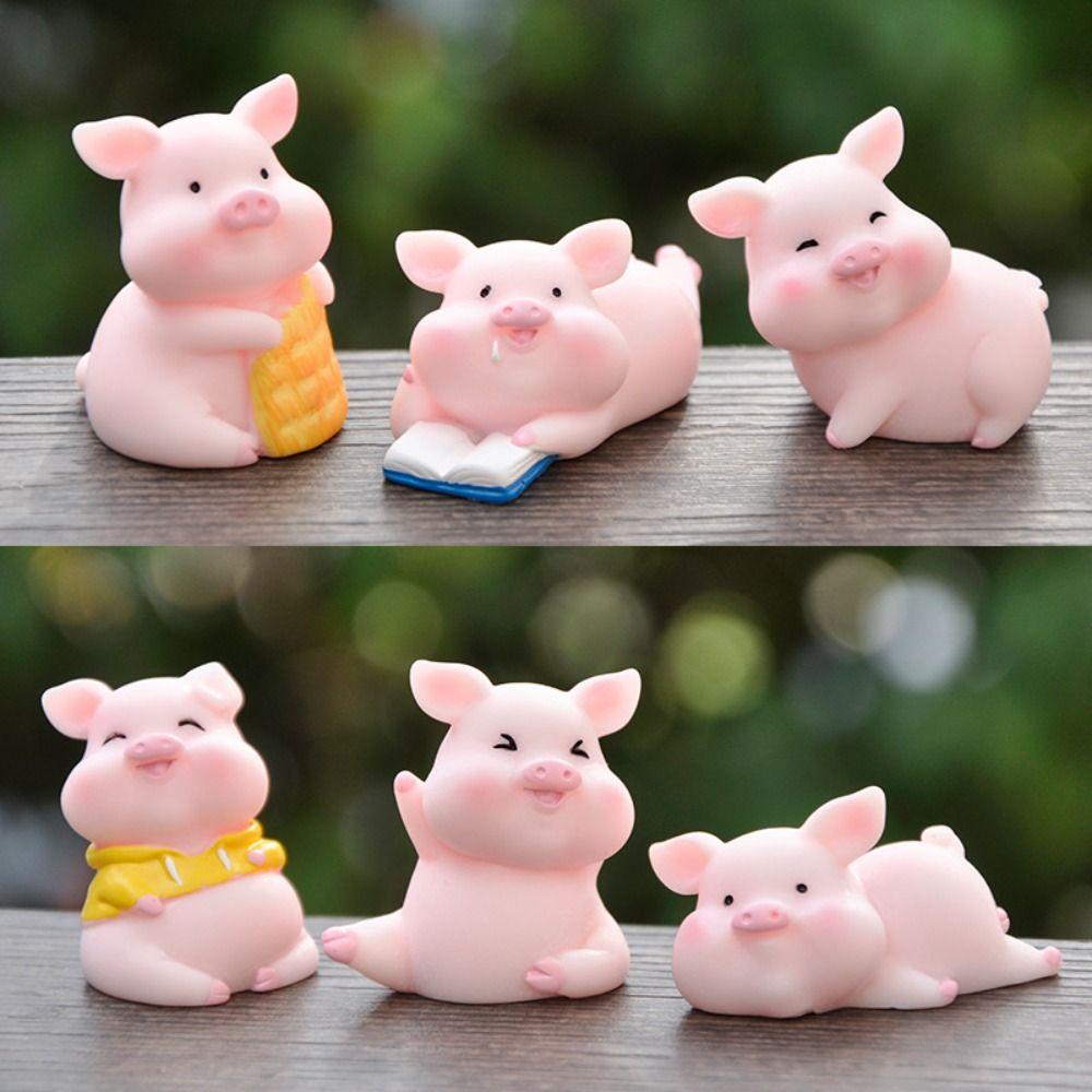 Miniatures Animal Pink Pig Landscape Ornaments Resin Cartoon PigCar Decoration Ornaments Gift