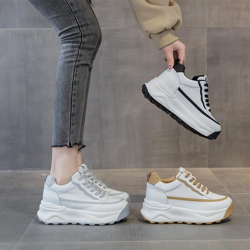 Кожаные маффины толстая подошва внутренняя высота увеличение маленькие белые туфли женские новые повседневные простые одинарные туфли