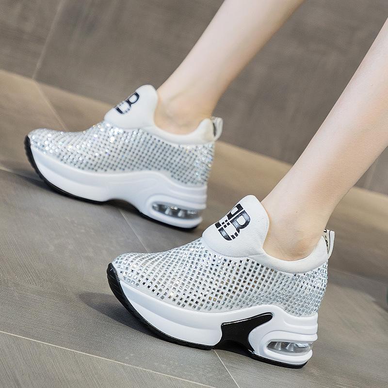 Женские одинарные туфли новая женская обувь модные стразы внутренняя высота увеличение толстая подошва воздушная подушка повседневная обувь женщины