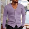 Мужской кардиган, повседневный свитер с длинным рукавом, V-образный вырез, застегивающийся на пуговицы, вязаный косами, текстурированная осенне-зимняя одежда