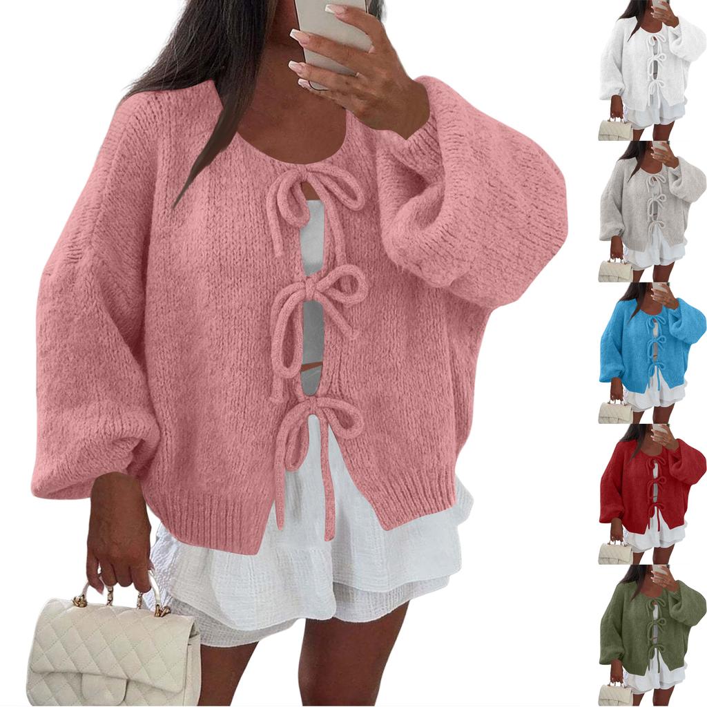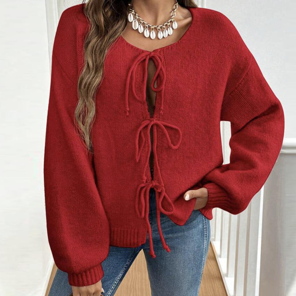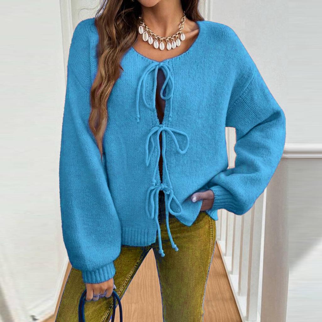 Женский кардиган с круглым вырезом и длинными рукавами, на шнуровке, приталенный