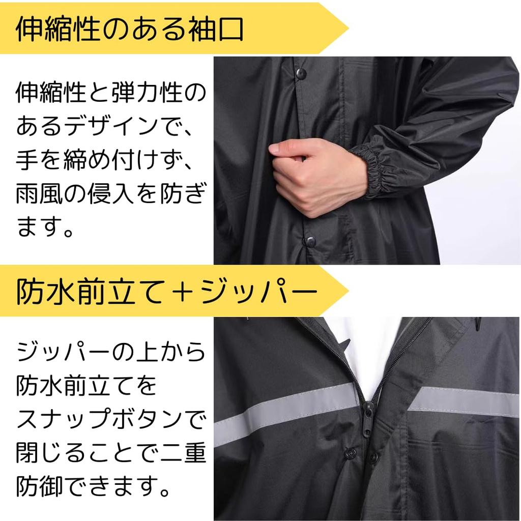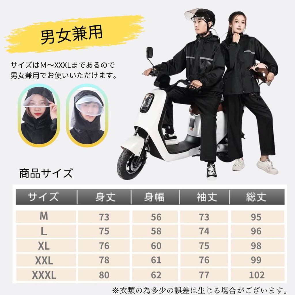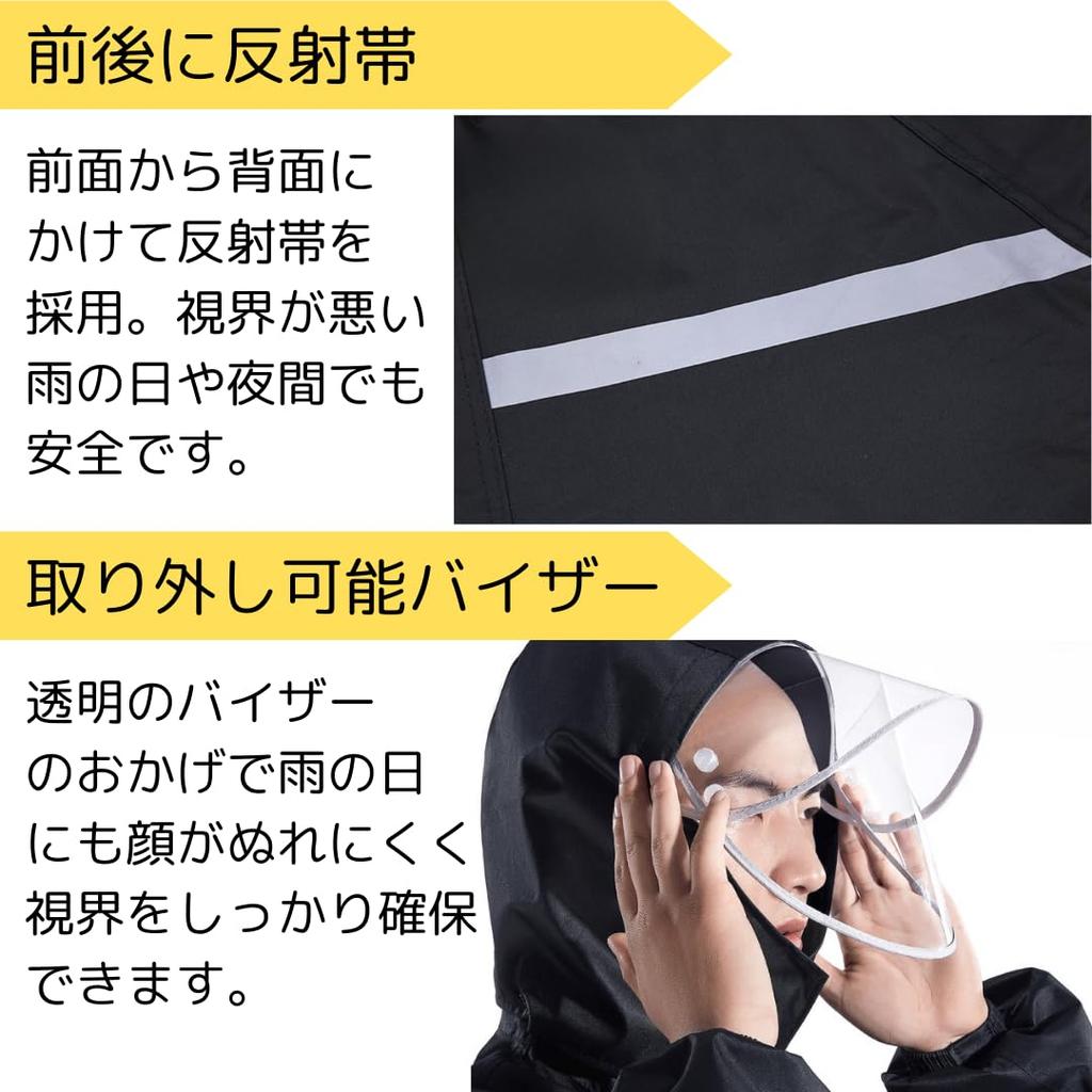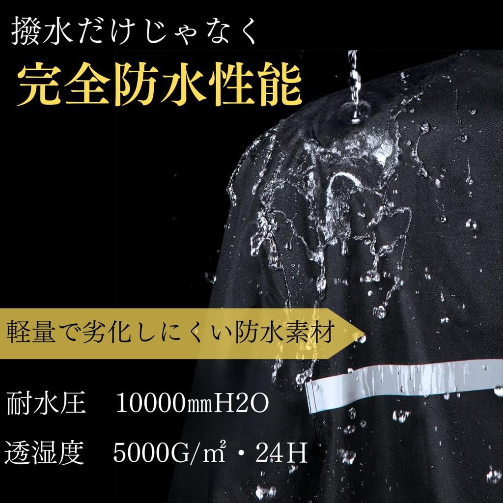 "Оставайтесь активными даже в дождливые дни! Оставайтесь в комфорте с этим полностью водонепроницаемым дождевиком." Не беспокойтесь о внезапных ливнях! Это полностью водонепроницаемый дождевой костюм, комплект из куртки и брюк.. Его можно носить даже с рюкзаком, и он отлично подходит для поездок в школу или на работу на велосипеде или мотоцикле, а также для активного отдыха и подготовки к стихийным бедствиям.. Сверхводоотталкивающая отделка отталкивает дождевую воду, а высокая воздухопроницаемость обеспечивает комфорт и предотвращает духоту.. Этот дождевик обеспечит вам безопасность даже в плохую погоду, такую как сезон дождей или тайфуны.