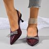 Женские босоножки на высоком каблуке с бантом, сексуальные, с кристальным декором, с острым носком, женские сандалии нового стиля для офисных леди, нескользящие