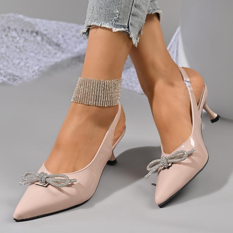 Женские босоножки на высоком каблуке с бантом, сексуальные, с кристальным декором, с острым носком, женские сандалии нового стиля для офисных леди, нескользящие — купить товар онлайн с бесплатной доставкой по всему миру!