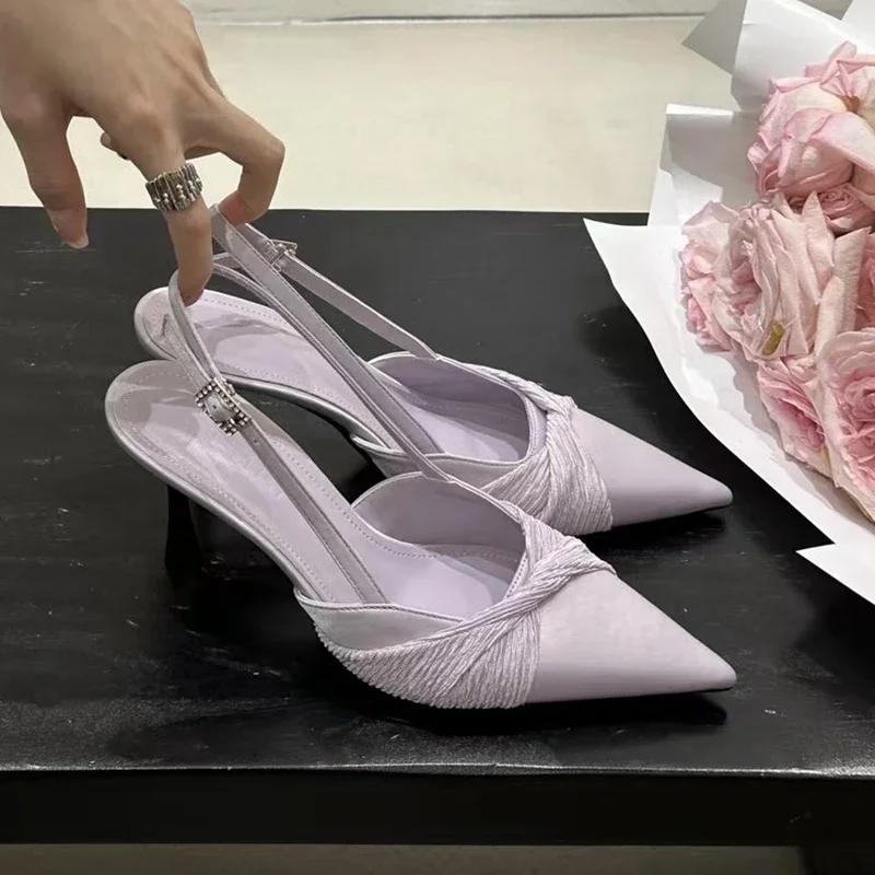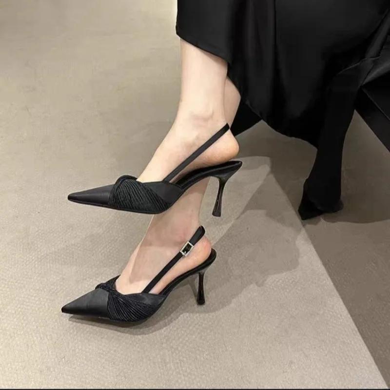 2025 Весна Новинка Бренд Женские Сандалии Мода Бант Острый Носок Женские Элегантные Туфли Слингбэки Тонкий Высокий Каблук Лодочки