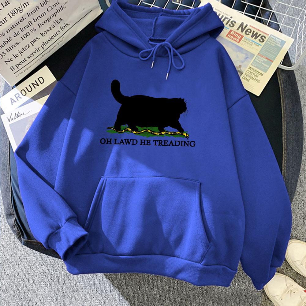 Забавные худи с принтом кота Oh Lawd He Treading, толстовки, женская/мужская одежда, удобная уличная одежда, мультяшное худи