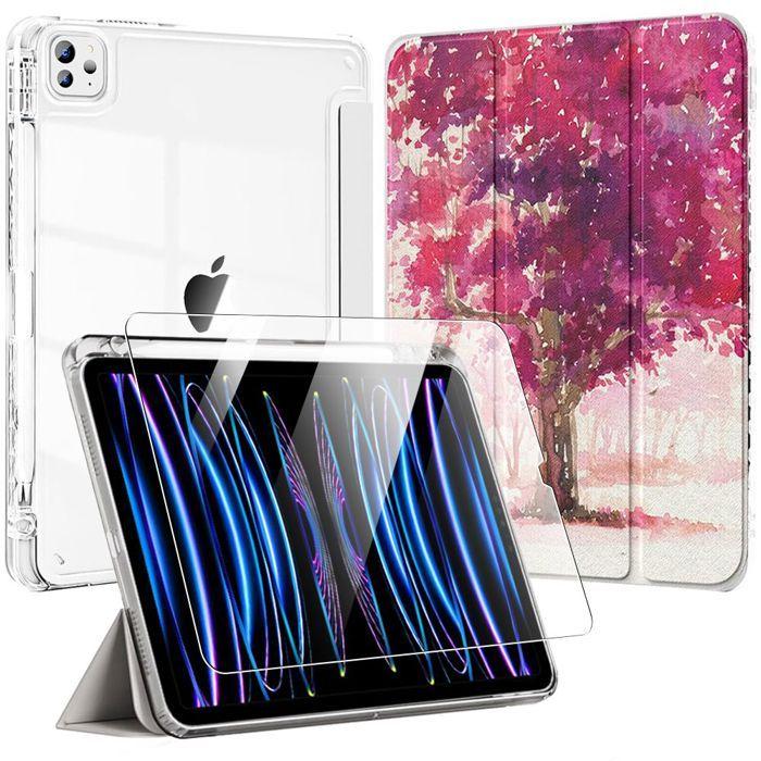 Coque de Protection - E.F.Connection - pour iPad Pro 11" - Arbre en fleurs - Verre Trempé - Compatible 2018-2022
