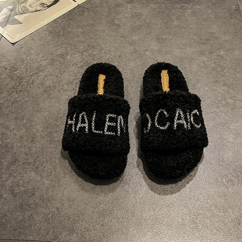 Премиальные тапочки-шлепанцы с пушком и буквой, женские летние новые модели, можно носить на улице, удобные, на толстой подошве, увеличивающие рост, тапочки-шлепанцы с одной перемычкой