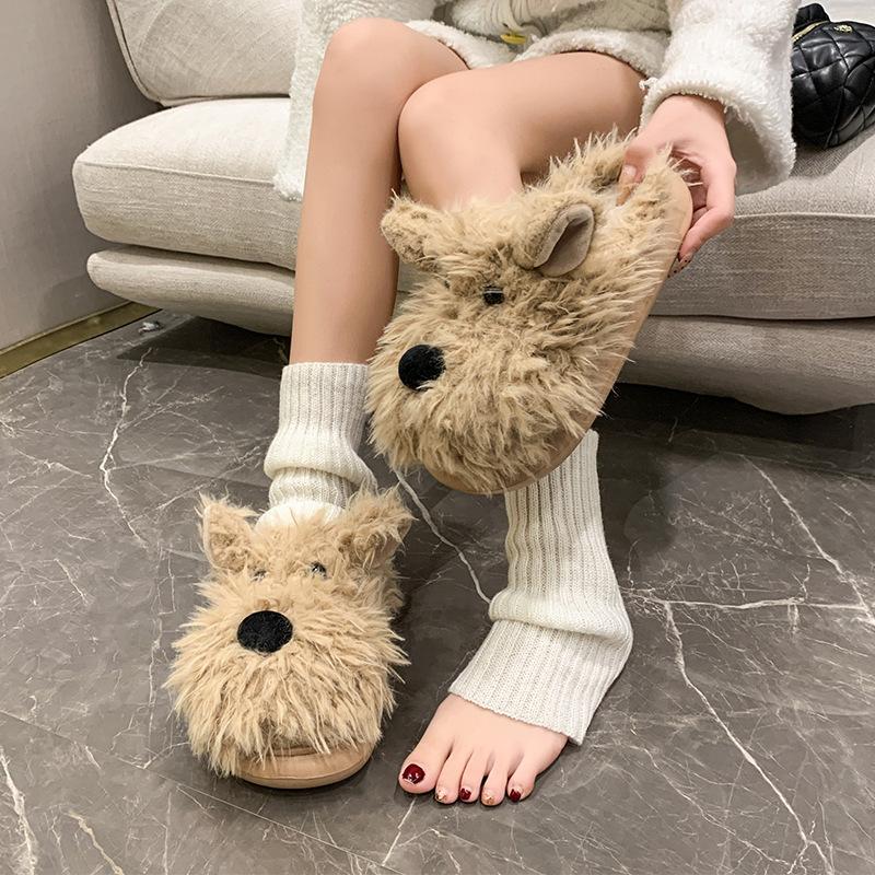 Женские тапочки-шлепанцы с мультяшным щенком, новинка сезона, супермягкие, на толстой подошве, пушистые, из махровой ткани, хлопковые, пушистые туфли