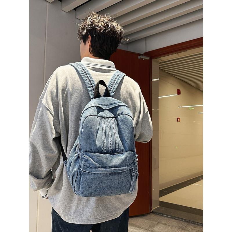 Повседневный ретро однотонный джинсовый рюкзак новый простой дорожный рюкзак универсальный студенческий школьный рюкзак