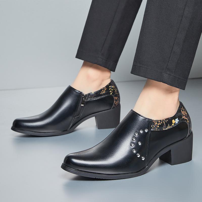 Тренд Новые Мужские Остроносые Панк Рок Клепки Слипоны Лакированная Кожа Увеличивающие Рост Туфли Мокасины Свадебные Выпускные Вечерние Туфли