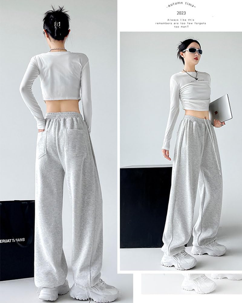 MTUIOY Длинные танцевальные свободные однотонные брюки в корейском стиле для женщин, спортивный костюм, спортивная одежда, брюки, йога, бег, облегающие, цвет, дышащие, - Bgray-L
