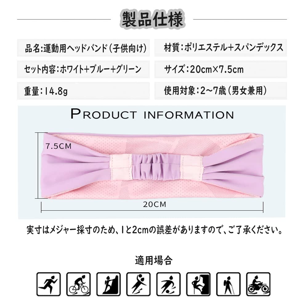 YaPanda из Повязок для Девочек и Возрастов Спорт на Открытом Воздухе Мягкий на и Унисекс для и Других Видов Спорта и [Набор 3] Детские Повязки на Голову, Напульсники, Мальчики, 2-7,