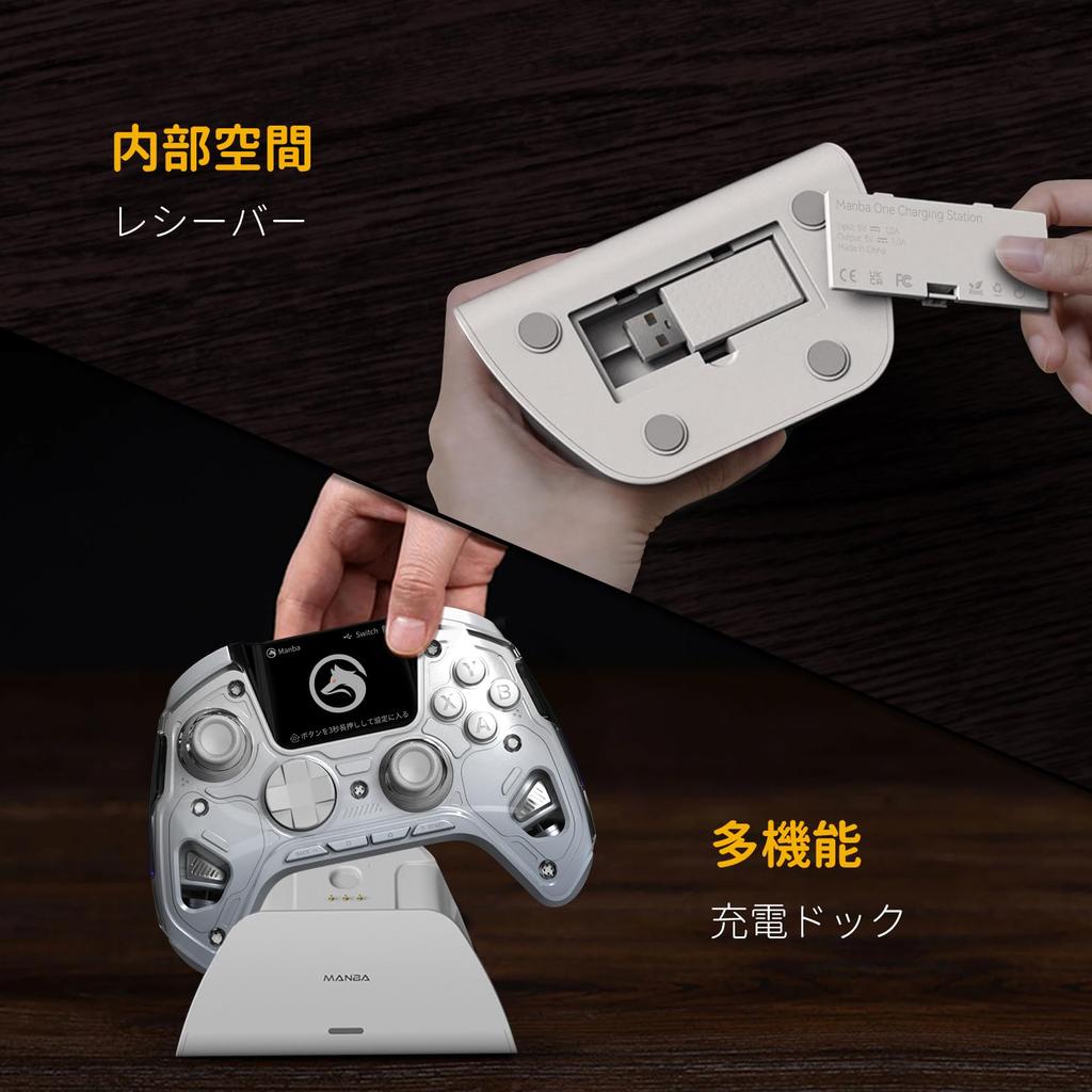 [Четыре задние кнопки*1800 мАч] Этот профессиональный игровой контроллер поставляется с четырьмя кнопками на задней панели. Вы можете настраивать одиночные или комбинированные нажатия клавиш с помощью ЖК-дисплея геймпада.. Вы также можете сохранить три варианта конфигурации. Он очень прост в использовании. Контроллер имеет встроенный аккумулятор емкостью 1800 мАч, который обеспечивает длительное питание для беспроводного контроллера.. Просто поместите его в док-станцию после игры, и он начнет заряжаться, устраняя необходимость искать зарядный кабель.