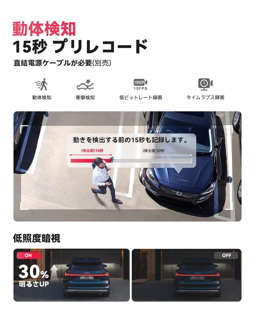 24-часовое наблюдение за парковкой Предварительная запись Ночное видение при слабом освещении: Оснащен 4 режимами парковки: обнаружение движения, обнаружение удара, запись с замедленной съемкой и запись с регулируемым битрейтом, поэтому его можно использовать в различных условиях парковки. При использовании традиционных функций обнаружения движения запись начинается через несколько секунд после обнаружения движения, поэтому важные моменты могут быть не записаны.. Этот продукт имеет 15-секундную функцию предварительной записи, которая сохраняет видеозапись за 15 секунд до обнаружения движения, обеспечивая целостность доказательств в случае чрезвычайной ситуации.. Кроме того, в условиях низкой освещенности, таких как подземные парковки, функция ночного видения при слабом освещении улучшает видимость видео на 30%. уведомление: Для использования функции мониторинга парковки требуется кабель питания прямого подключения (продано отдельно). (КАК В: B0C2PTBNHH)
