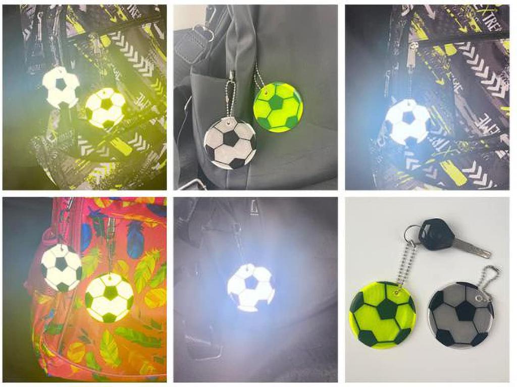 Светоотражающий брелок Bellarino, Светоотражатель, Набор брелоков, Футбольный мяч, Флуоресцентный, Детский, Безопасный, Набор из 2 штук, белый + желтый